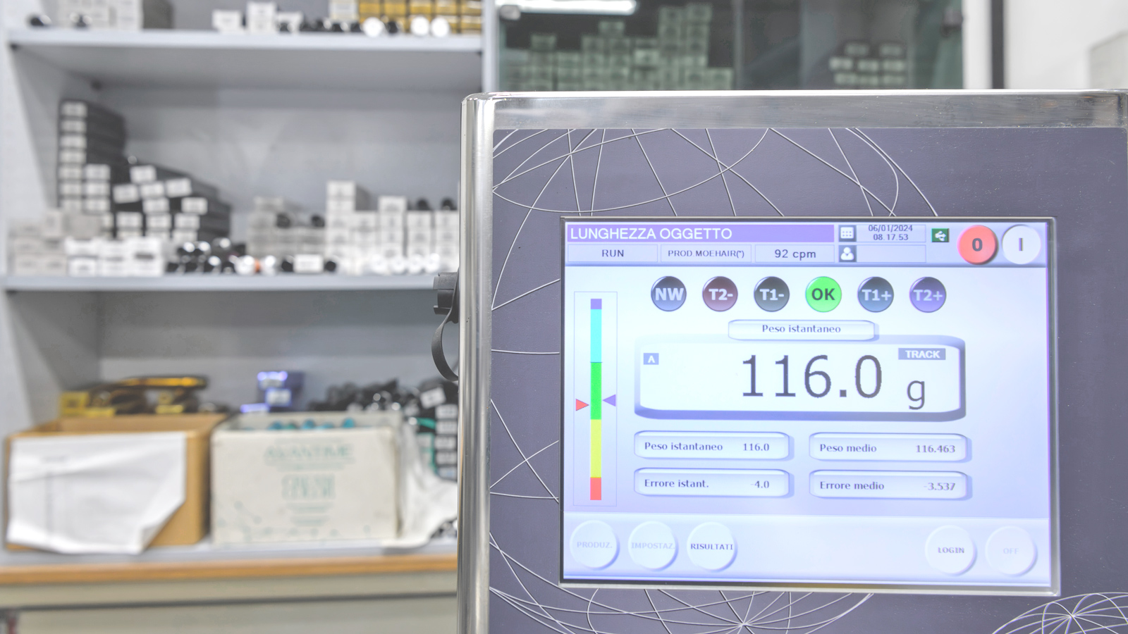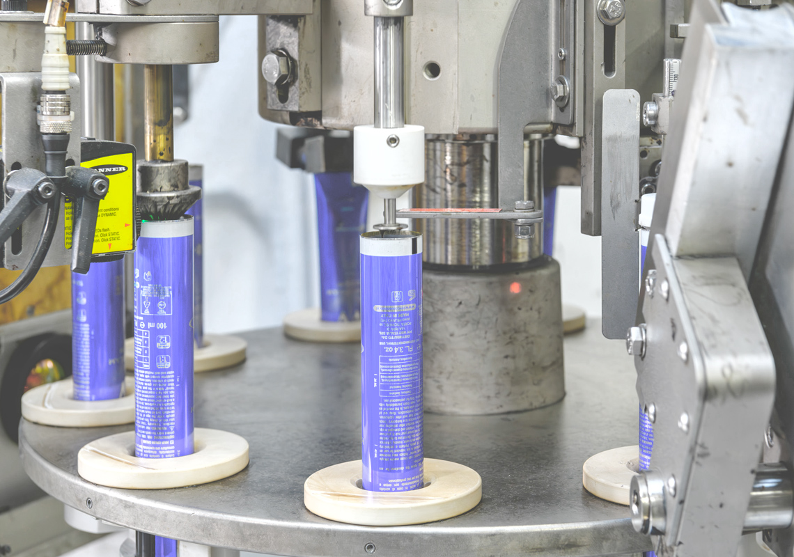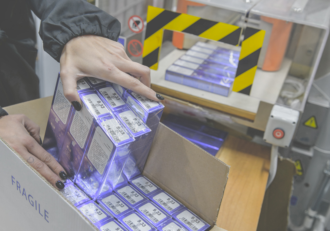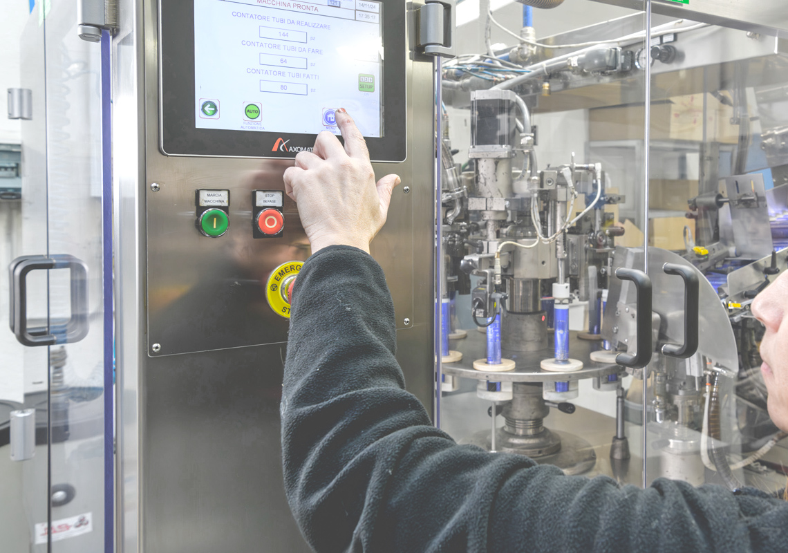 Packaging is carried out with automatic lines, starting with the filling of the individual 60ml or 100ml tubes coded with laser engraving, to the subsequent positioning in the cartons, continuing with labelling and then reaching the final stage of 3-piece blistering with boxing in 36-piece ink-jet-coded boxes.