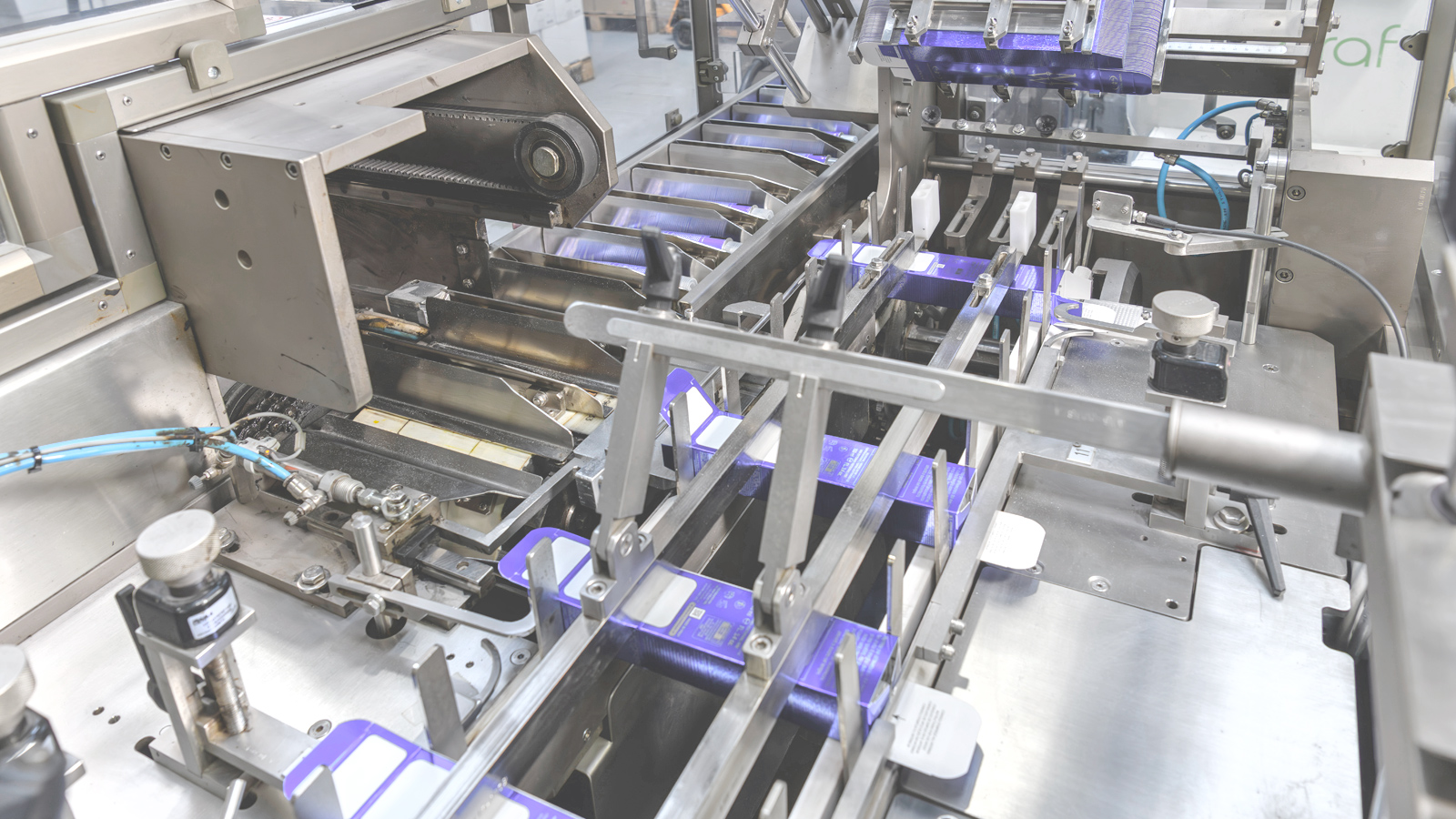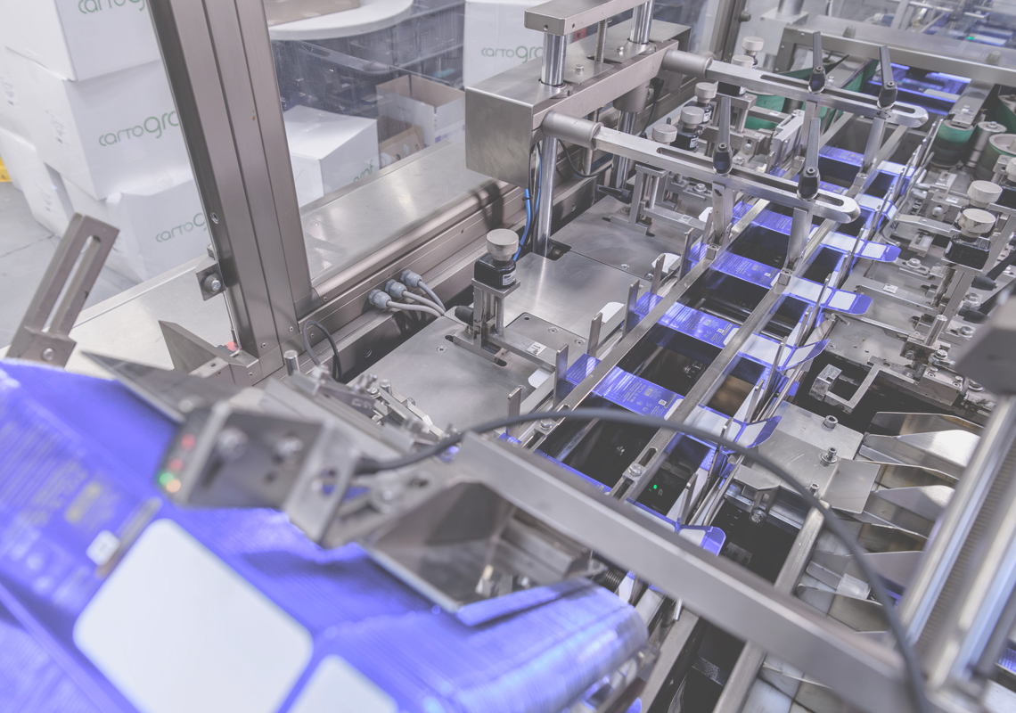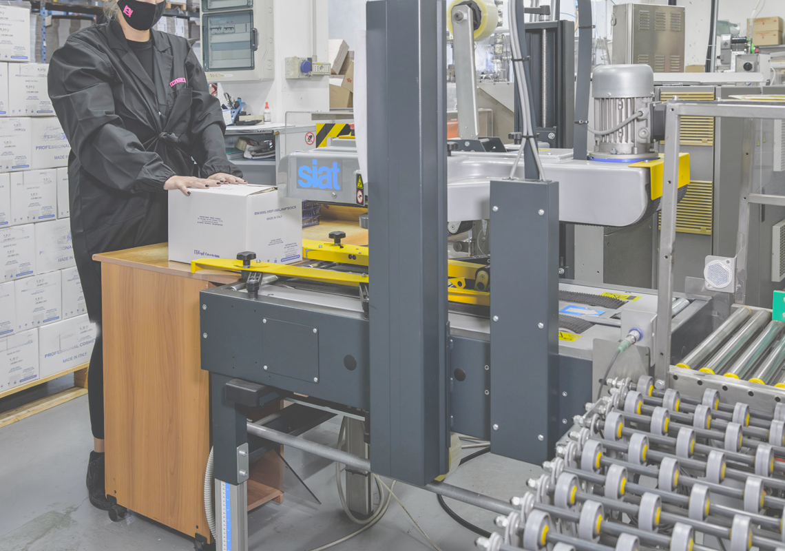Packaging is carried out with automatic lines, starting with the filling of the individual 60ml or 100ml tubes coded with laser engraving, to the subsequent positioning in the cartons, continuing with labelling and then reaching the final stage of 3-piece blistering with boxing in 36-piece ink-jet-coded boxes.