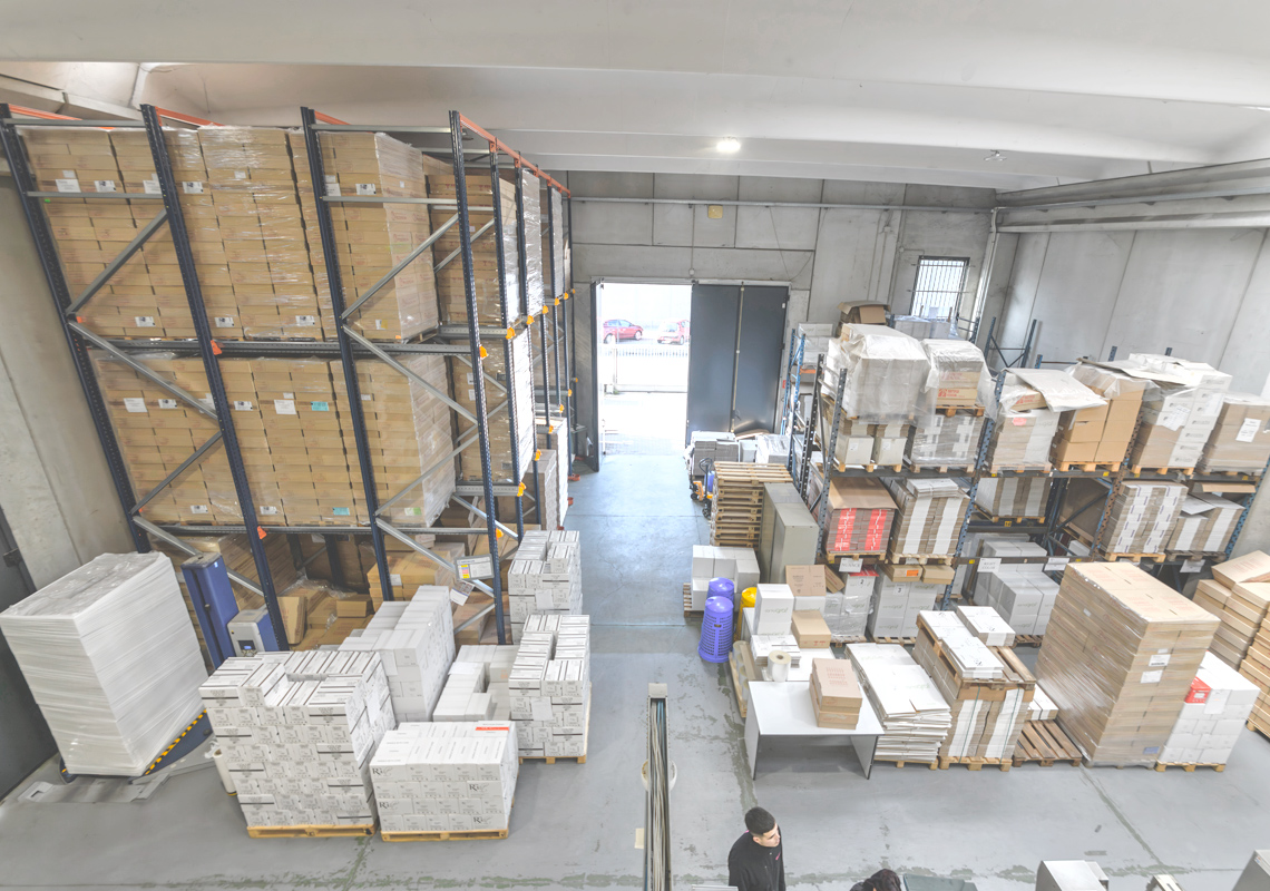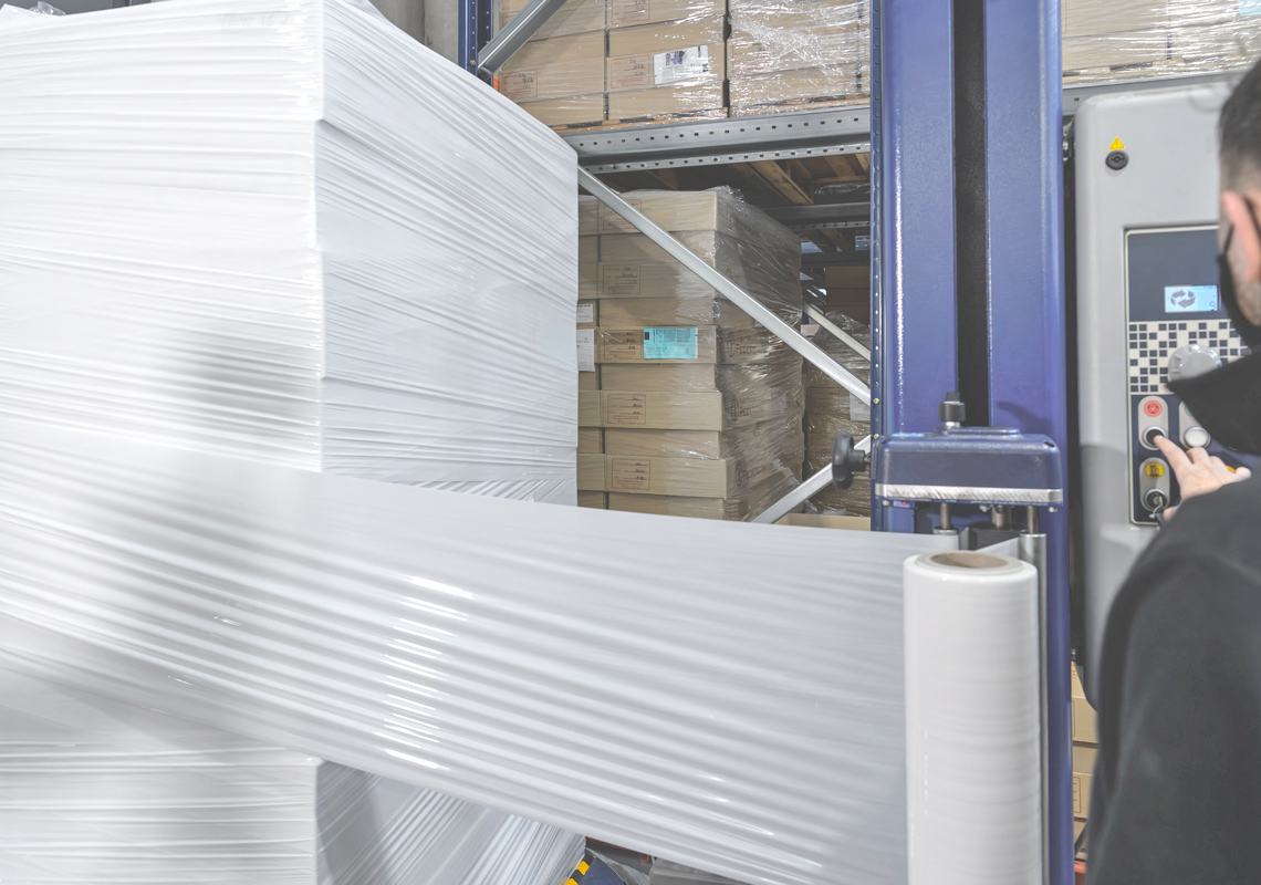 Once the packaging is finished, the pallet is taken to the logistics area for shipment with storage awaiting collection.